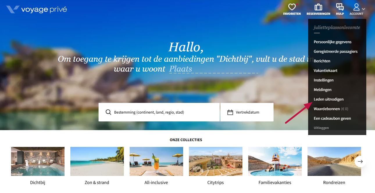 - Log in op je account: Ga naar de Voyage Privé-website en log in op je account. Als je nog geen account hebt, moet je er een aanmaken om toegang te krijgen tot de verwijzingsfunctie.